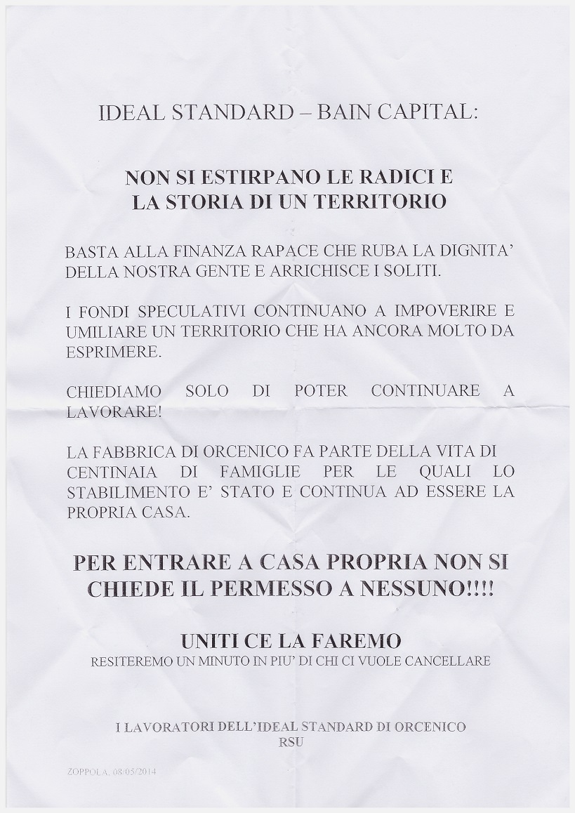 Questi dirigenti appartengono a quella razza di persone che si sono succedute alla direzione di questo oramai ex stabilimento ed è grazie a loro se abbiamo toccato il fondo, i mali dell’Ideal Standard hanno radici profonde.