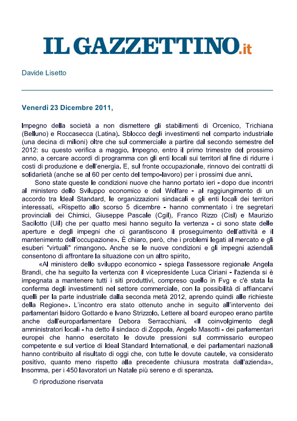 ILGAZZETTINO 23/12/2011