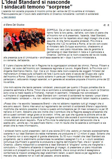 ''Normalmente le grandi società sono in grado di avere un rapporto misurato con il territorio in cui operano ma qui l'impressione e' stata differente, di modalità adottate ritenendo che questo fosse un Paese debole in cui si sarebbe potuto fare di tutto''. Cosi' il Presidente di Unindustria Pordenone, Michelangelo Agrusti, all'indomani della decisione assunta dalla Territoriale di Confindustria di non rappresentare più Ideal STandard in alcuna sede istituzionale, durante una conferenza stampa alla quale, questa mattina, hanno preso parte anche i vice presidenti Sergio Barel, Marco Camuccio, e Andrea Malacart. ''La comunità degli imprenditori di questa provincia ha altri codici - ha spiegato Agrusti - e sviluppato nel tempo una cultura di relazioni sindacali straordinaria. Intendiamoci: Unindustria assiste le aziende in difficoltà che sono in qualche modo giunte al capolinea ma e' chiaro, direi evidente, che nel momento in cui esistono concrete possibilità di ripresa o rilancio, noi alla morte scegliamo la vita. Preferiamo che le imprese che sono ancora in grado di farlo proseguano perché e' stato il manifatturiero a garantire la cifra industriale a questo territorio''. L'analitica ricostruzione della cronologia che ha ruotato attorno alla vicenda Ideal Standard e' già proiettata al futuro: ''Abbiamo chiesto e ottenuto una riunione al Mise per la prossima settimana - ha informato il Presidente - ragionevolmente mercoledì o giovedì, ci sono obbligazioni che in quella sede sono state assunte e che in quella sede debbono essere verificate. Certo - ha proseguito - trovo imbarazzante che a fronte dell'atteggiamento del Governo, che grazie anche all'interessamento della Regione aveva collocato IS in una short list di cassa in deroga sino a dicembre, eventualità davvero straordinaria che avrebbe garantito molte cose, sia stato raccolto un atteggiamento sprezzante non solo nei confronti di Pordenone e delle sue Istituzioni ma anche di quelle nazionali. Ognuno decide di vivere con l'eleganza che vuole, certo e' che qui discutiamo della vita di 450 persone''. Agrusti, ricordando l'atteggiamento estremamente responsabile delle organizzazioni sindacali, ha confermato che Unindustria, pur non rappresentando più IS, ''non si sottrarrà dall'obbligo civile di contribuire con tutti i soggetti rimasti in campo, affinché si individui una soluzione per il mantenimento dell'attività produttiva''.