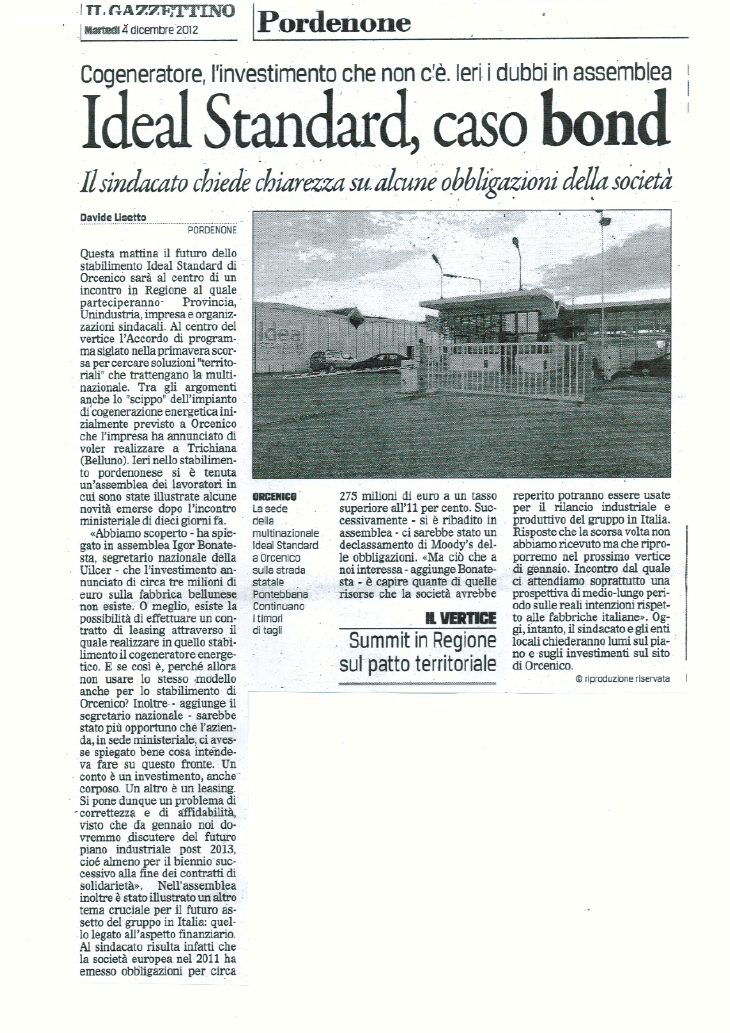 ''Normalmente le grandi società sono in grado di avere un rapporto misurato con il territorio in cui operano ma qui l'impressione e' stata differente, di modalità adottate ritenendo che questo fosse un Paese debole in cui si sarebbe potuto fare di tutto''. Cosi' il Presidente di Unindustria Pordenone, Michelangelo Agrusti, all'indomani della decisione assunta dalla Territoriale di Confindustria di non rappresentare più Ideal STandard in alcuna sede istituzionale, durante una conferenza stampa alla quale, questa mattina, hanno preso parte anche i vice presidenti Sergio Barel, Marco Camuccio, e Andrea Malacart. ''La comunità degli imprenditori di questa provincia ha altri codici - ha spiegato Agrusti - e sviluppato nel tempo una cultura di relazioni sindacali straordinaria. Intendiamoci: Unindustria assiste le aziende in difficoltà che sono in qualche modo giunte al capolinea ma e' chiaro, direi evidente, che nel momento in cui esistono concrete possibilità di ripresa o rilancio, noi alla morte scegliamo la vita. Preferiamo che le imprese che sono ancora in grado di farlo proseguano perché e' stato il manifatturiero a garantire la cifra industriale a questo territorio''. L'analitica ricostruzione della cronologia che ha ruotato attorno alla vicenda Ideal Standard e' già proiettata al futuro: ''Abbiamo chiesto e ottenuto una riunione al Mise per la prossima settimana - ha informato il Presidente - ragionevolmente mercoledì o giovedì, ci sono obbligazioni che in quella sede sono state assunte e che in quella sede debbono essere verificate. Certo - ha proseguito - trovo imbarazzante che a fronte dell'atteggiamento del Governo, che grazie anche all'interessamento della Regione aveva collocato IS in una short list di cassa in deroga sino a dicembre, eventualità davvero straordinaria che avrebbe garantito molte cose, sia stato raccolto un atteggiamento sprezzante non solo nei confronti di Pordenone e delle sue Istituzioni ma anche di quelle nazionali. Ognuno decide di vivere con l'eleganza che vuole, certo e' che qui discutiamo della vita di 450 persone''. Agrusti, ricordando l'atteggiamento estremamente responsabile delle organizzazioni sindacali, ha confermato che Unindustria, pur non rappresentando più IS, ''non si sottrarrà dall'obbligo civile di contribuire con tutti i soggetti rimasti in campo, affinché si individui una soluzione per il mantenimento dell'attività produttiva''.