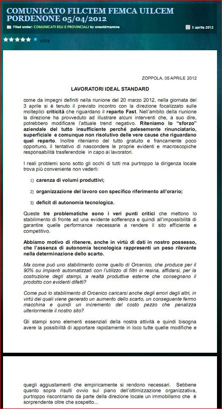 • LETTERA DEI LAVORATORI DI ORCENICO