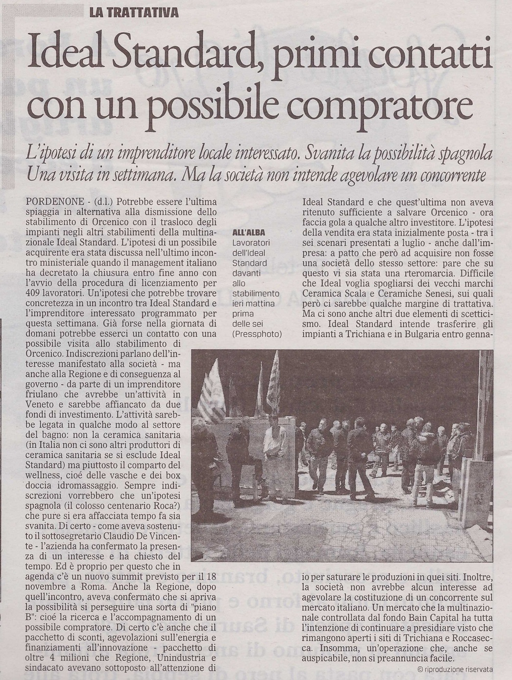 ''Normalmente le grandi società sono in grado di avere un rapporto misurato con il territorio in cui operano ma qui l'impressione e' stata differente, di modalità adottate ritenendo che questo fosse un Paese debole in cui si sarebbe potuto fare di tutto''. Cosi' il Presidente di Unindustria Pordenone, Michelangelo Agrusti, all'indomani della decisione assunta dalla Territoriale di Confindustria di non rappresentare più Ideal STandard in alcuna sede istituzionale, durante una conferenza stampa alla quale, questa mattina, hanno preso parte anche i vice presidenti Sergio Barel, Marco Camuccio, e Andrea Malacart. ''La comunità degli imprenditori di questa provincia ha altri codici - ha spiegato Agrusti - e sviluppato nel tempo una cultura di relazioni sindacali straordinaria. Intendiamoci: Unindustria assiste le aziende in difficoltà che sono in qualche modo giunte al capolinea ma e' chiaro, direi evidente, che nel momento in cui esistono concrete possibilità di ripresa o rilancio, noi alla morte scegliamo la vita. Preferiamo che le imprese che sono ancora in grado di farlo proseguano perché e' stato il manifatturiero a garantire la cifra industriale a questo territorio''. L'analitica ricostruzione della cronologia che ha ruotato attorno alla vicenda Ideal Standard e' già proiettata al futuro: ''Abbiamo chiesto e ottenuto una riunione al Mise per la prossima settimana - ha informato il Presidente - ragionevolmente mercoledì o giovedì, ci sono obbligazioni che in quella sede sono state assunte e che in quella sede debbono essere verificate. Certo - ha proseguito - trovo imbarazzante che a fronte dell'atteggiamento del Governo, che grazie anche all'interessamento della Regione aveva collocato IS in una short list di cassa in deroga sino a dicembre, eventualità davvero straordinaria che avrebbe garantito molte cose, sia stato raccolto un atteggiamento sprezzante non solo nei confronti di Pordenone e delle sue Istituzioni ma anche di quelle nazionali. Ognuno decide di vivere con l'eleganza che vuole, certo e' che qui discutiamo della vita di 450 persone''. Agrusti, ricordando l'atteggiamento estremamente responsabile delle organizzazioni sindacali, ha confermato che Unindustria, pur non rappresentando più IS, ''non si sottrarrà dall'obbligo civile di contribuire con tutti i soggetti rimasti in campo, affinché si individui una soluzione per il mantenimento dell'attività produttiva''.