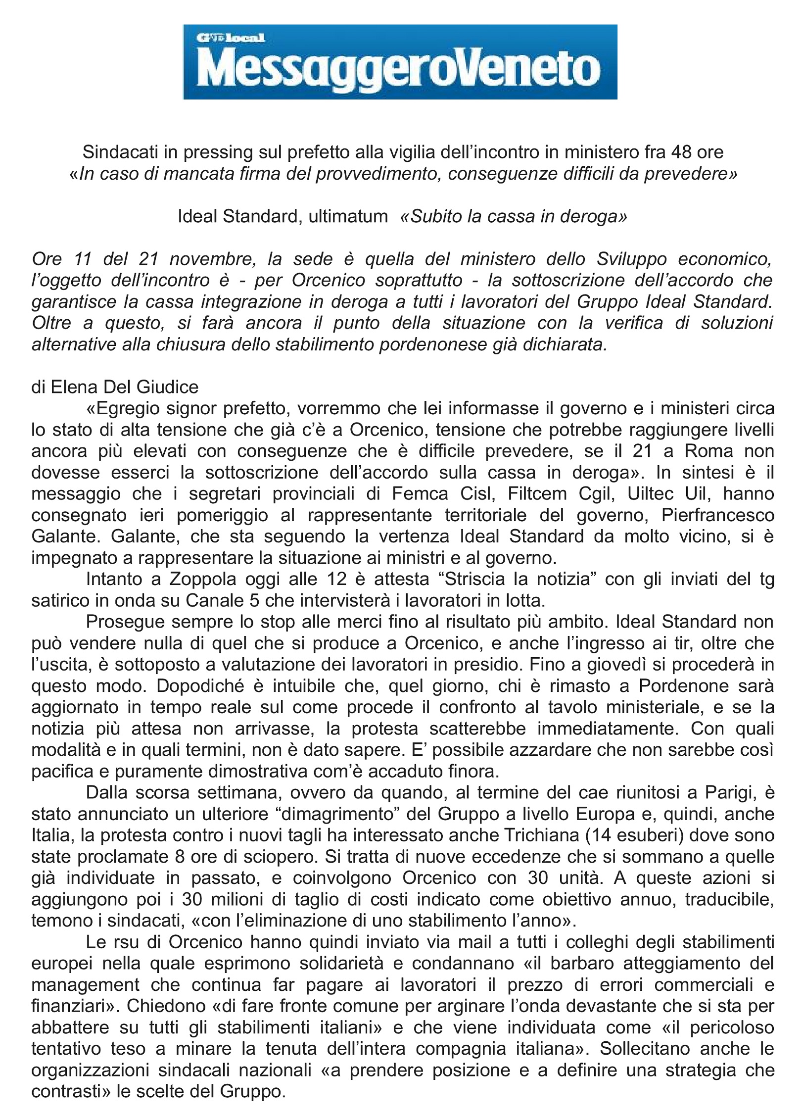Oltre alla chiusura di orcenico, ai 150 esuberi di Trichiana, ai circa 80 di Roccasecca, previsti da quel piano, recentemente se ne sono aggiunti un’altra settantina della holding….forse non era poi tanto il caso di fare il tifo per l’azienda che finita la cassa in deroga concessa ieri, molto probabilmente darà l’ennesimo colpo di scure, ma sarà troppo tardi per capire che bisognava essere più solidali con i lavoratori in difficoltà piuttosto che farsi inebriare dalle sirene aziendali.