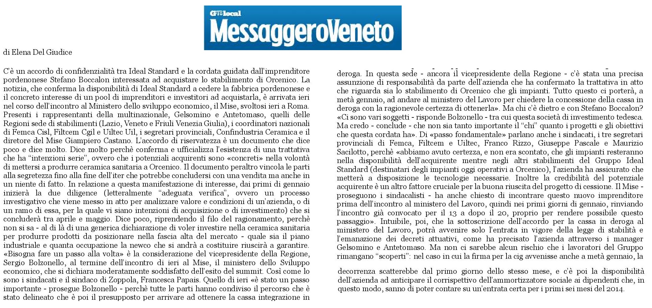 ''Normalmente le grandi società sono in grado di avere un rapporto misurato con il territorio in cui operano ma qui l'impressione e' stata differente, di modalità adottate ritenendo che questo fosse un Paese debole in cui si sarebbe potuto fare di tutto''. Cosi' il Presidente di Unindustria Pordenone, Michelangelo Agrusti, all'indomani della decisione assunta dalla Territoriale di Confindustria di non rappresentare più Ideal STandard in alcuna sede istituzionale, durante una conferenza stampa alla quale, questa mattina, hanno preso parte anche i vice presidenti Sergio Barel, Marco Camuccio, e Andrea Malacart. ''La comunità degli imprenditori di questa provincia ha altri codici - ha spiegato Agrusti - e sviluppato nel tempo una cultura di relazioni sindacali straordinaria. Intendiamoci: Unindustria assiste le aziende in difficoltà che sono in qualche modo giunte al capolinea ma e' chiaro, direi evidente, che nel momento in cui esistono concrete possibilità di ripresa o rilancio, noi alla morte scegliamo la vita. Preferiamo che le imprese che sono ancora in grado di farlo proseguano perché e' stato il manifatturiero a garantire la cifra industriale a questo territorio''. L'analitica ricostruzione della cronologia che ha ruotato attorno alla vicenda Ideal Standard e' già proiettata al futuro: ''Abbiamo chiesto e ottenuto una riunione al Mise per la prossima settimana - ha informato il Presidente - ragionevolmente mercoledì o giovedì, ci sono obbligazioni che in quella sede sono state assunte e che in quella sede debbono essere verificate. Certo - ha proseguito - trovo imbarazzante che a fronte dell'atteggiamento del Governo, che grazie anche all'interessamento della Regione aveva collocato IS in una short list di cassa in deroga sino a dicembre, eventualità davvero straordinaria che avrebbe garantito molte cose, sia stato raccolto un atteggiamento sprezzante non solo nei confronti di Pordenone e delle sue Istituzioni ma anche di quelle nazionali. Ognuno decide di vivere con l'eleganza che vuole, certo e' che qui discutiamo della vita di 450 persone''. Agrusti, ricordando l'atteggiamento estremamente responsabile delle organizzazioni sindacali, ha confermato che Unindustria, pur non rappresentando più IS, ''non si sottrarrà dall'obbligo civile di contribuire con tutti i soggetti rimasti in campo, affinché si individui una soluzione per il mantenimento dell'attività produttiva''.