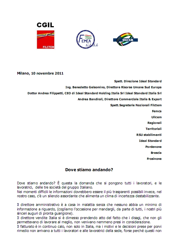 In risposta alle posizioni aziendali emerse dall’incontro di Sassuolo, il Coordinamento Sindacale Nazionale ha indetto una manifestazione di protesta davanti alla piattaforma logistica di BASSANO BRESCIANO (BS), per le giornate del 29 e 30 novembre 2011.
