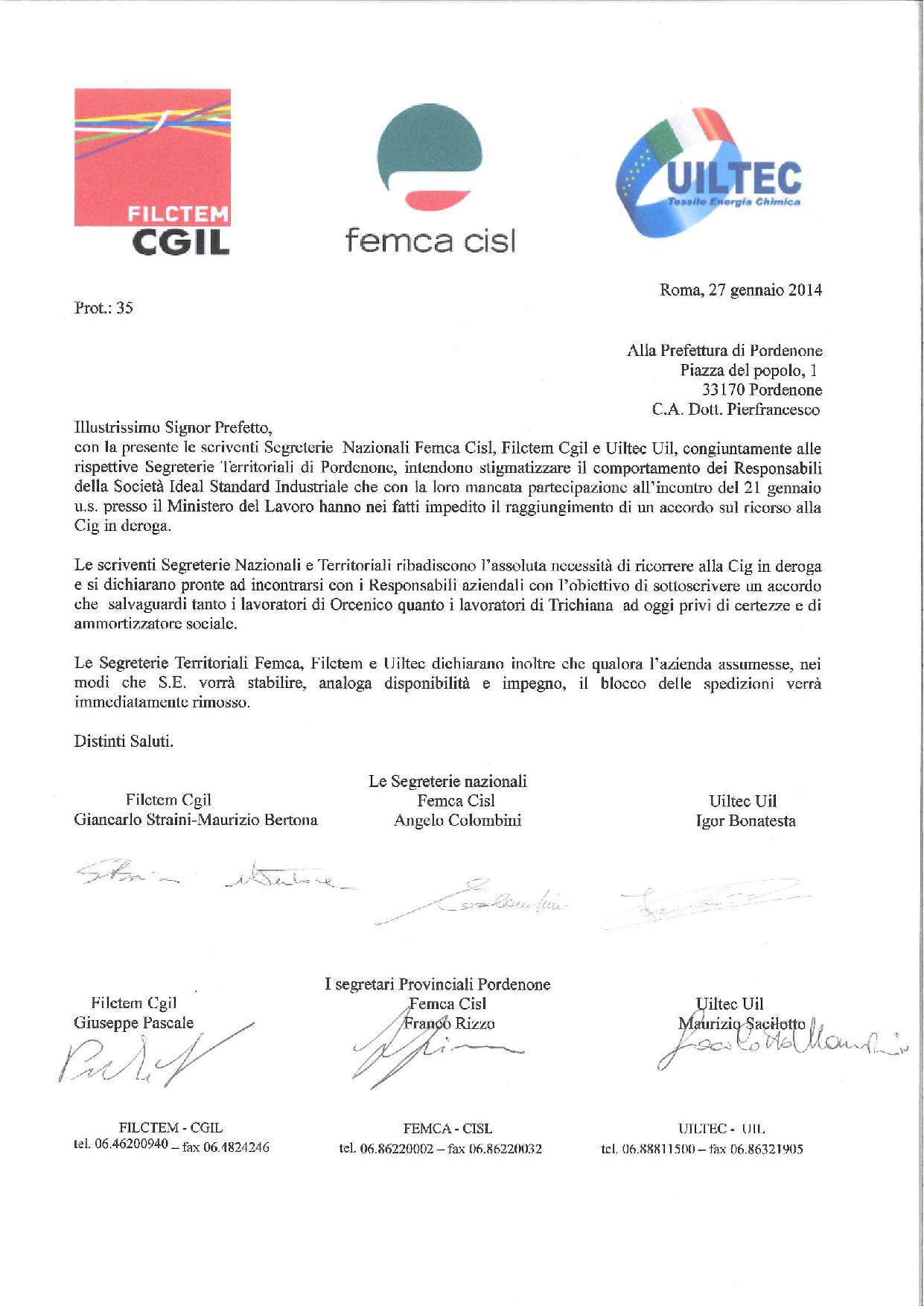 COMUNICATO UNITARIO