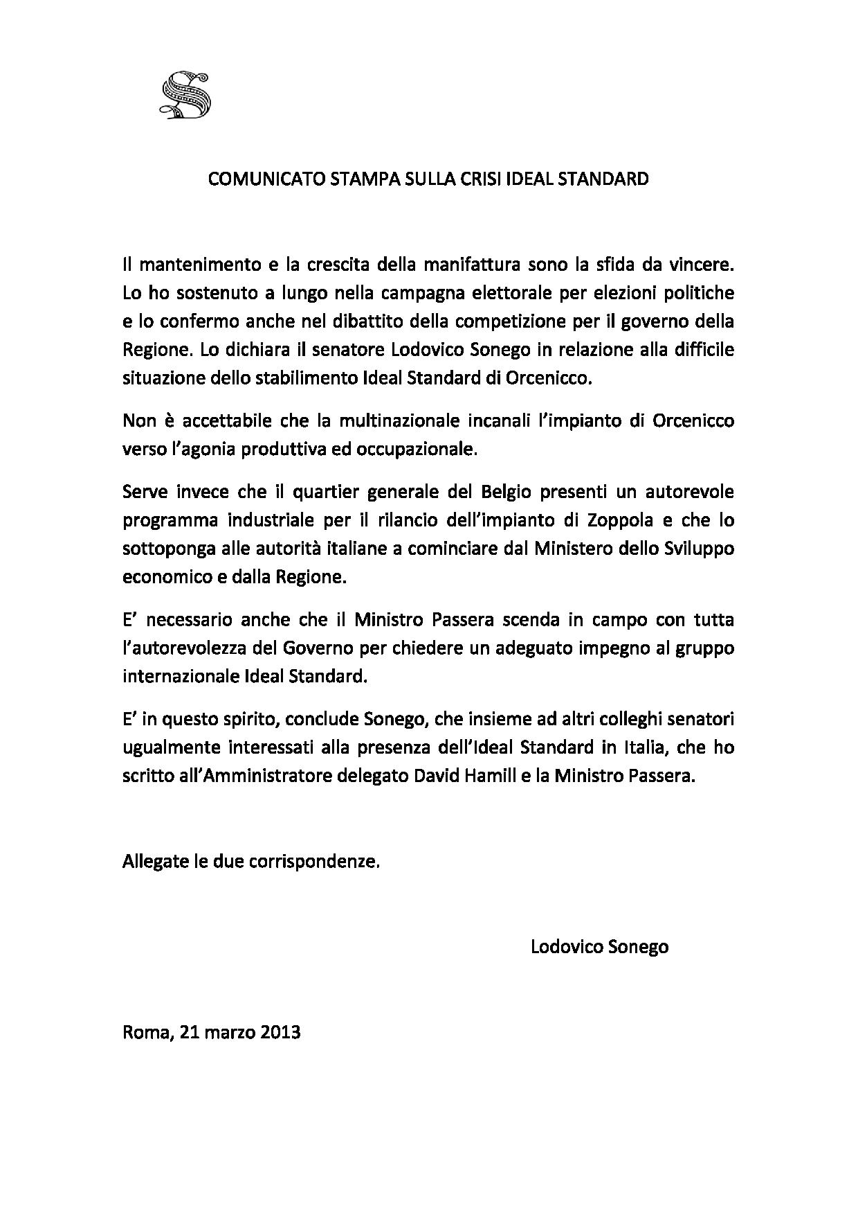 dell’Ideal Standard di Orcenico di Zoppola (PN) per il prossimo