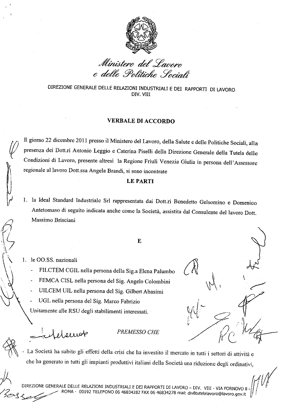 E’ STATO SIGLATO IL PROTOCOLLO PER LA