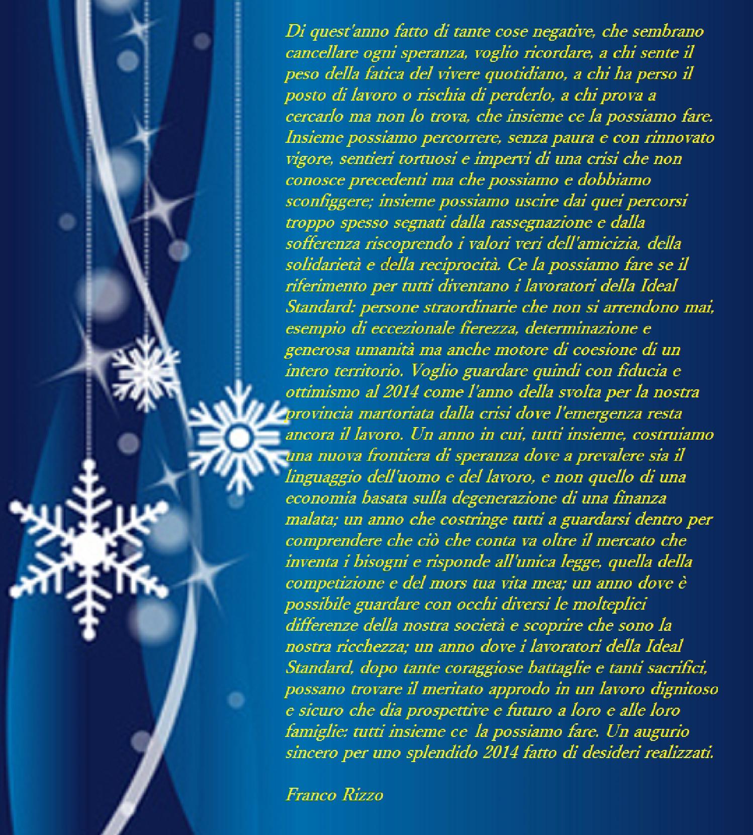 Auguri di vero cuore e un in bocca al lupo da chi non ha dimenticato dieci anni trascorsi, nel bene e nel male, all’ Ideal Standard.
