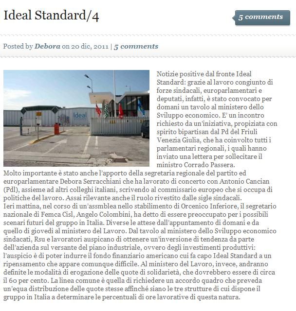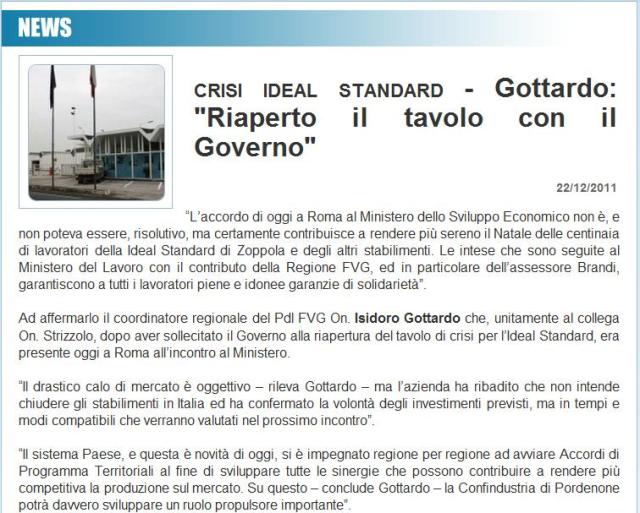 Un anno sta svolgendo al termine, un anno iniziato con il lento trascinarsi di quelle che erano le attese conseguenti all’accordo di fine 2009 che avrebbe dovuto dare un futuro garantito alla compagnia italiana di Ideal Standad.