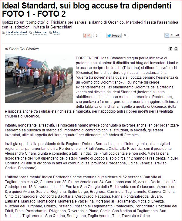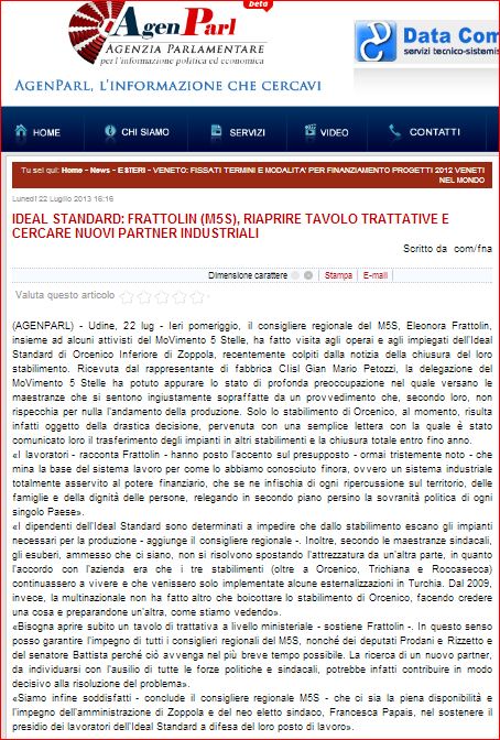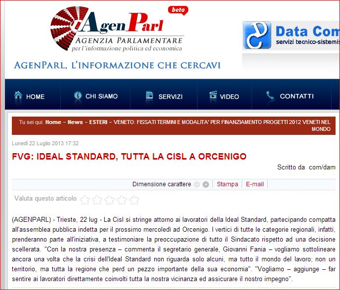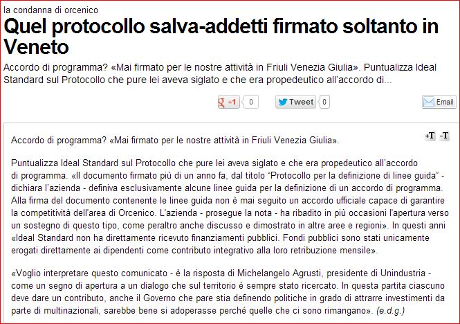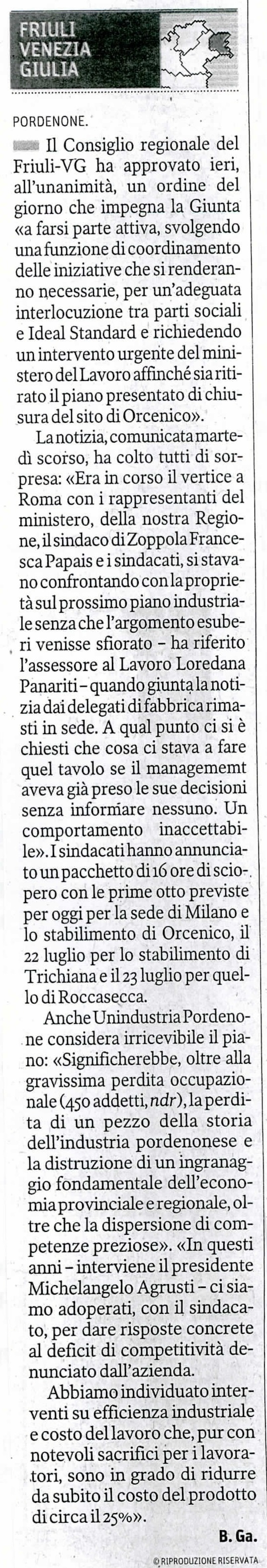 ''Normalmente le grandi società sono in grado di avere un rapporto misurato con il territorio in cui operano ma qui l'impressione e' stata differente, di modalità adottate ritenendo che questo fosse un Paese debole in cui si sarebbe potuto fare di tutto''. Cosi' il Presidente di Unindustria Pordenone, Michelangelo Agrusti, all'indomani della decisione assunta dalla Territoriale di Confindustria di non rappresentare più Ideal STandard in alcuna sede istituzionale, durante una conferenza stampa alla quale, questa mattina, hanno preso parte anche i vice presidenti Sergio Barel, Marco Camuccio, e Andrea Malacart. ''La comunità degli imprenditori di questa provincia ha altri codici - ha spiegato Agrusti - e sviluppato nel tempo una cultura di relazioni sindacali straordinaria. Intendiamoci: Unindustria assiste le aziende in difficoltà che sono in qualche modo giunte al capolinea ma e' chiaro, direi evidente, che nel momento in cui esistono concrete possibilità di ripresa o rilancio, noi alla morte scegliamo la vita. Preferiamo che le imprese che sono ancora in grado di farlo proseguano perché e' stato il manifatturiero a garantire la cifra industriale a questo territorio''. L'analitica ricostruzione della cronologia che ha ruotato attorno alla vicenda Ideal Standard e' già proiettata al futuro: ''Abbiamo chiesto e ottenuto una riunione al Mise per la prossima settimana - ha informato il Presidente - ragionevolmente mercoledì o giovedì, ci sono obbligazioni che in quella sede sono state assunte e che in quella sede debbono essere verificate. Certo - ha proseguito - trovo imbarazzante che a fronte dell'atteggiamento del Governo, che grazie anche all'interessamento della Regione aveva collocato IS in una short list di cassa in deroga sino a dicembre, eventualità davvero straordinaria che avrebbe garantito molte cose, sia stato raccolto un atteggiamento sprezzante non solo nei confronti di Pordenone e delle sue Istituzioni ma anche di quelle nazionali. Ognuno decide di vivere con l'eleganza che vuole, certo e' che qui discutiamo della vita di 450 persone''. Agrusti, ricordando l'atteggiamento estremamente responsabile delle organizzazioni sindacali, ha confermato che Unindustria, pur non rappresentando più IS, ''non si sottrarrà dall'obbligo civile di contribuire con tutti i soggetti rimasti in campo, affinché si individui una soluzione per il mantenimento dell'attività produttiva''.