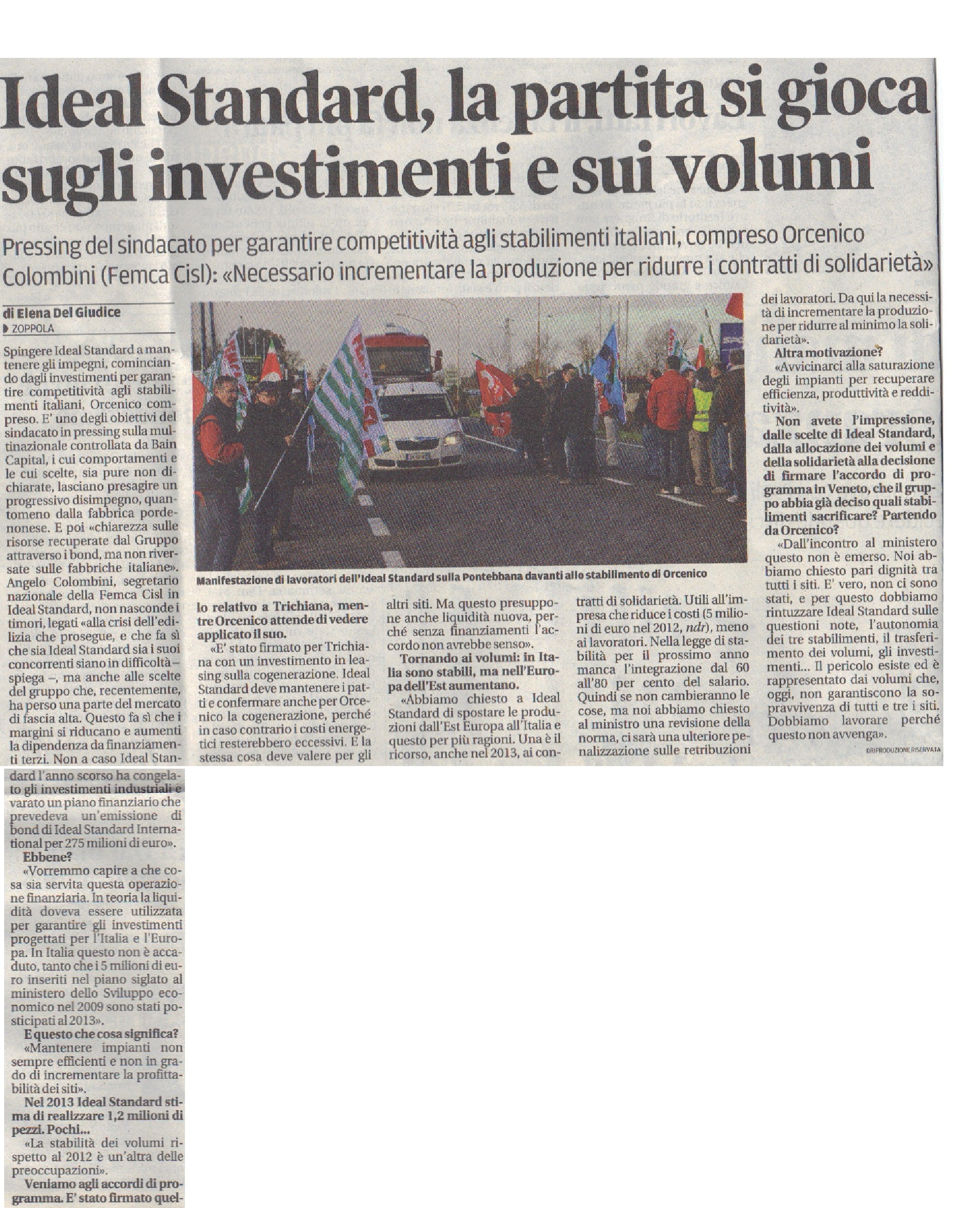 ''Normalmente le grandi società sono in grado di avere un rapporto misurato con il territorio in cui operano ma qui l'impressione e' stata differente, di modalità adottate ritenendo che questo fosse un Paese debole in cui si sarebbe potuto fare di tutto''. Cosi' il Presidente di Unindustria Pordenone, Michelangelo Agrusti, all'indomani della decisione assunta dalla Territoriale di Confindustria di non rappresentare più Ideal STandard in alcuna sede istituzionale, durante una conferenza stampa alla quale, questa mattina, hanno preso parte anche i vice presidenti Sergio Barel, Marco Camuccio, e Andrea Malacart. ''La comunità degli imprenditori di questa provincia ha altri codici - ha spiegato Agrusti - e sviluppato nel tempo una cultura di relazioni sindacali straordinaria. Intendiamoci: Unindustria assiste le aziende in difficoltà che sono in qualche modo giunte al capolinea ma e' chiaro, direi evidente, che nel momento in cui esistono concrete possibilità di ripresa o rilancio, noi alla morte scegliamo la vita. Preferiamo che le imprese che sono ancora in grado di farlo proseguano perché e' stato il manifatturiero a garantire la cifra industriale a questo territorio''. L'analitica ricostruzione della cronologia che ha ruotato attorno alla vicenda Ideal Standard e' già proiettata al futuro: ''Abbiamo chiesto e ottenuto una riunione al Mise per la prossima settimana - ha informato il Presidente - ragionevolmente mercoledì o giovedì, ci sono obbligazioni che in quella sede sono state assunte e che in quella sede debbono essere verificate. Certo - ha proseguito - trovo imbarazzante che a fronte dell'atteggiamento del Governo, che grazie anche all'interessamento della Regione aveva collocato IS in una short list di cassa in deroga sino a dicembre, eventualità davvero straordinaria che avrebbe garantito molte cose, sia stato raccolto un atteggiamento sprezzante non solo nei confronti di Pordenone e delle sue Istituzioni ma anche di quelle nazionali. Ognuno decide di vivere con l'eleganza che vuole, certo e' che qui discutiamo della vita di 450 persone''. Agrusti, ricordando l'atteggiamento estremamente responsabile delle organizzazioni sindacali, ha confermato che Unindustria, pur non rappresentando più IS, ''non si sottrarrà dall'obbligo civile di contribuire con tutti i soggetti rimasti in campo, affinché si individui una soluzione per il mantenimento dell'attività produttiva''.