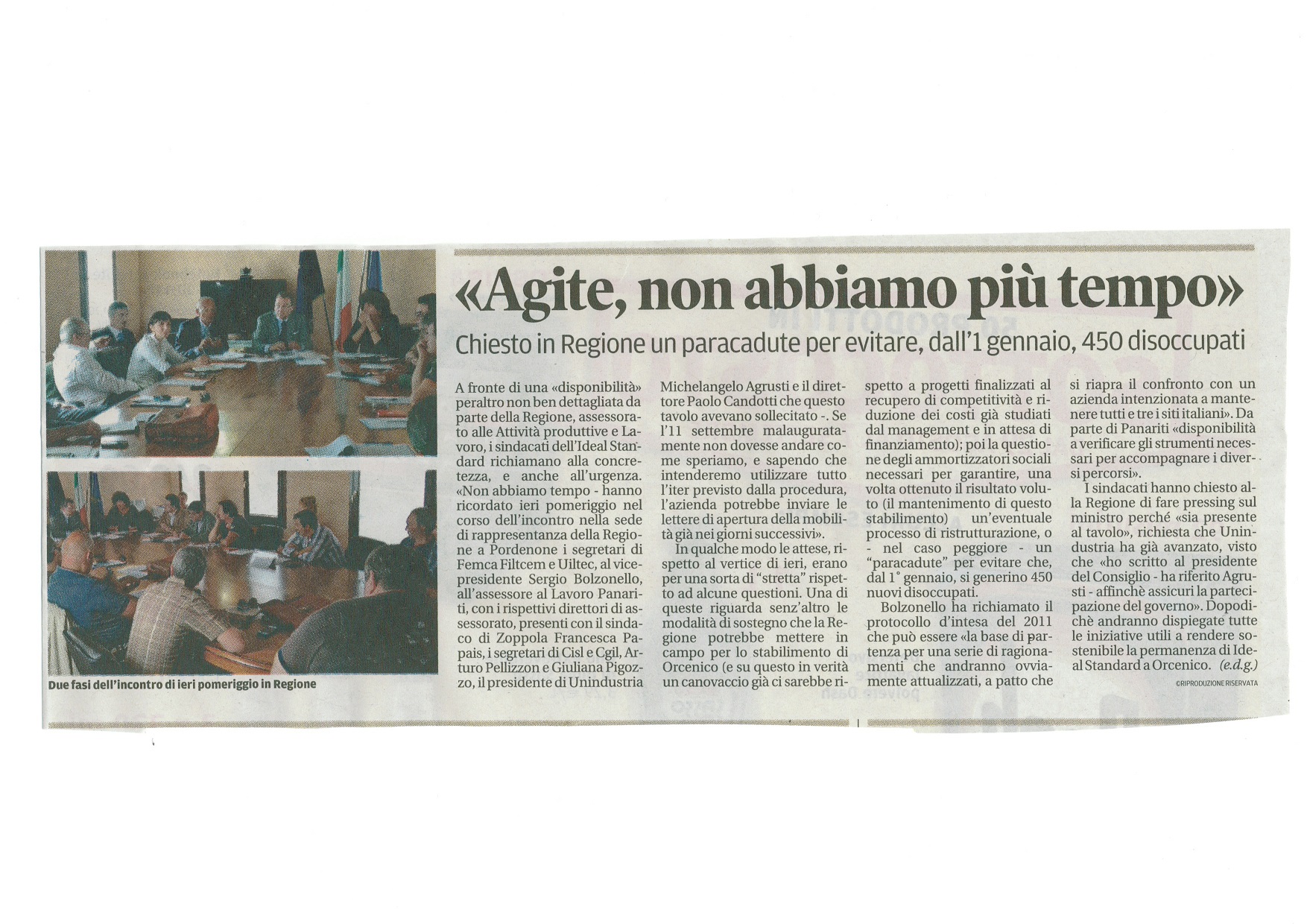 - ritiro della pregiudiziale sulla chiusura dello stabilimento di Orcenico;